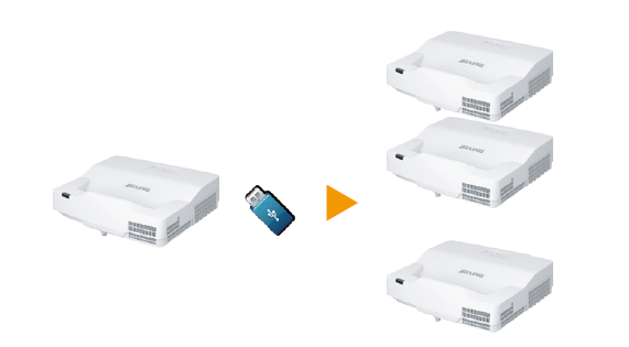 通过USB 存储设备复制投影机的相关设定,从而拷贝到同型号其他投影机上使用,提高多台安装作业的便利性。